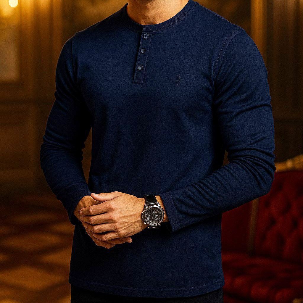 تیشرت سه_دگمه آستین بلند جذاب پائیزه پنبه اعلا دورو ۵٠ بسیار با کیفیت پارچــــــه بی نظیر و با کیفیت کاملا متفاوت با دوروهایی که در بازار دیدین اسپرت مناسب برای زیر پیراهن، کت، کاپشن، پافر، سویشرت و...