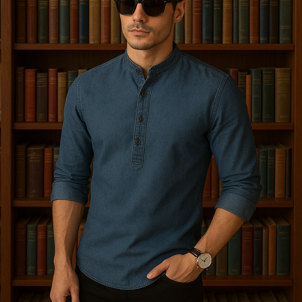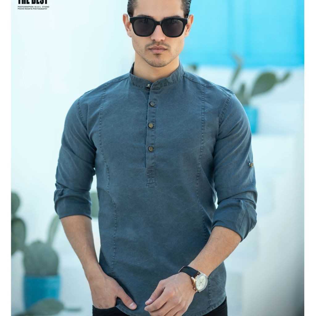 پیراهن کوتینگ جلوبسته مردانه آستین بلند | پیراهن نخی سنگشور شیک | پوشاک پویاک
