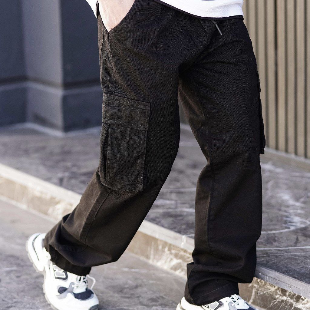 شلوار کارگو ۶ جیب مردانه کد B4032 | کتان پنبه اعلا با کپ آزاد و دمپای استپر دار